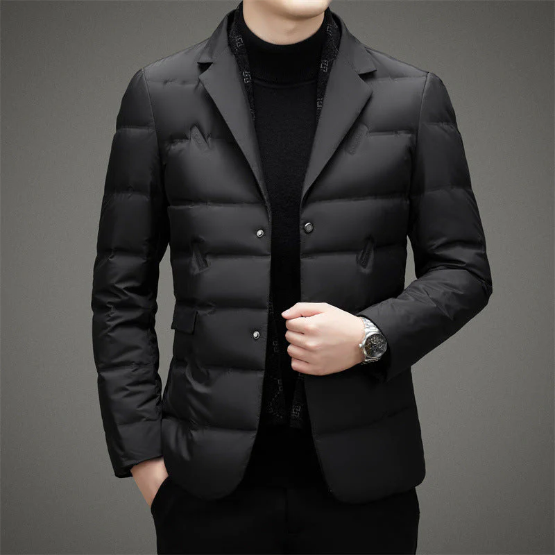 The François Blanchet Executive Down Jacket, filled with luxurious white duck down, delivers unmatched warmth and breathability for even the coldest winter days. With its refined lapel collar, sleek design, and plush, high-fluff finish, this jacket embodies sophistication and elegance, making it the perfect choice for those who seek a premium, polished look.
